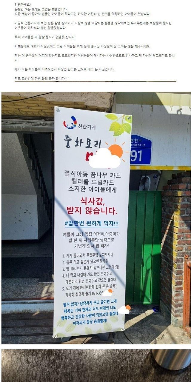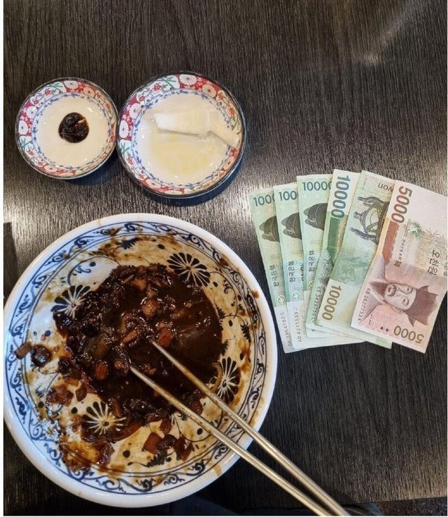 “좋은 일하는 중국집이 있는데 아는 지인이 거기 다녀 와서 짜장면 값으로 5만5천원을 냈다”는 글을 씀
