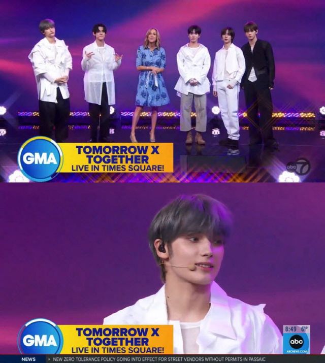 투모로우바이투게더(TXT)는 지난달 31일(이하 현지시간) 미국 ABC의 대표 모닝쇼 ‘굿모닝 아메리카’(Good Morning America)에 출연했다. 이들은 ‘굿모닝 아메리카’의 뉴욕 스튜디오에서 생방송으로 인터뷰를 진행하고, 지난 4월 발매된 미니 6집 ‘minisode 3: TOMORROW’의 타이틀곡 ‘Deja Vu’ 퍼포먼스를 펼쳤다.