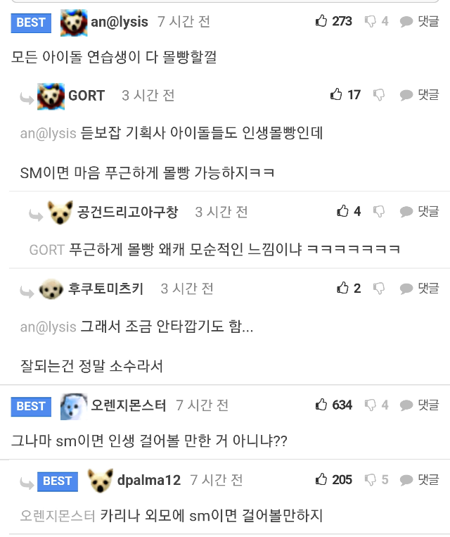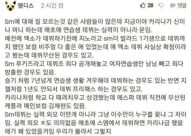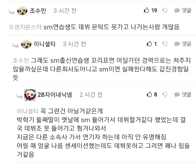 sm에서 데뷔 못하고 지금 다른데서 데뷔했는데야붕이들은 알지도 못함