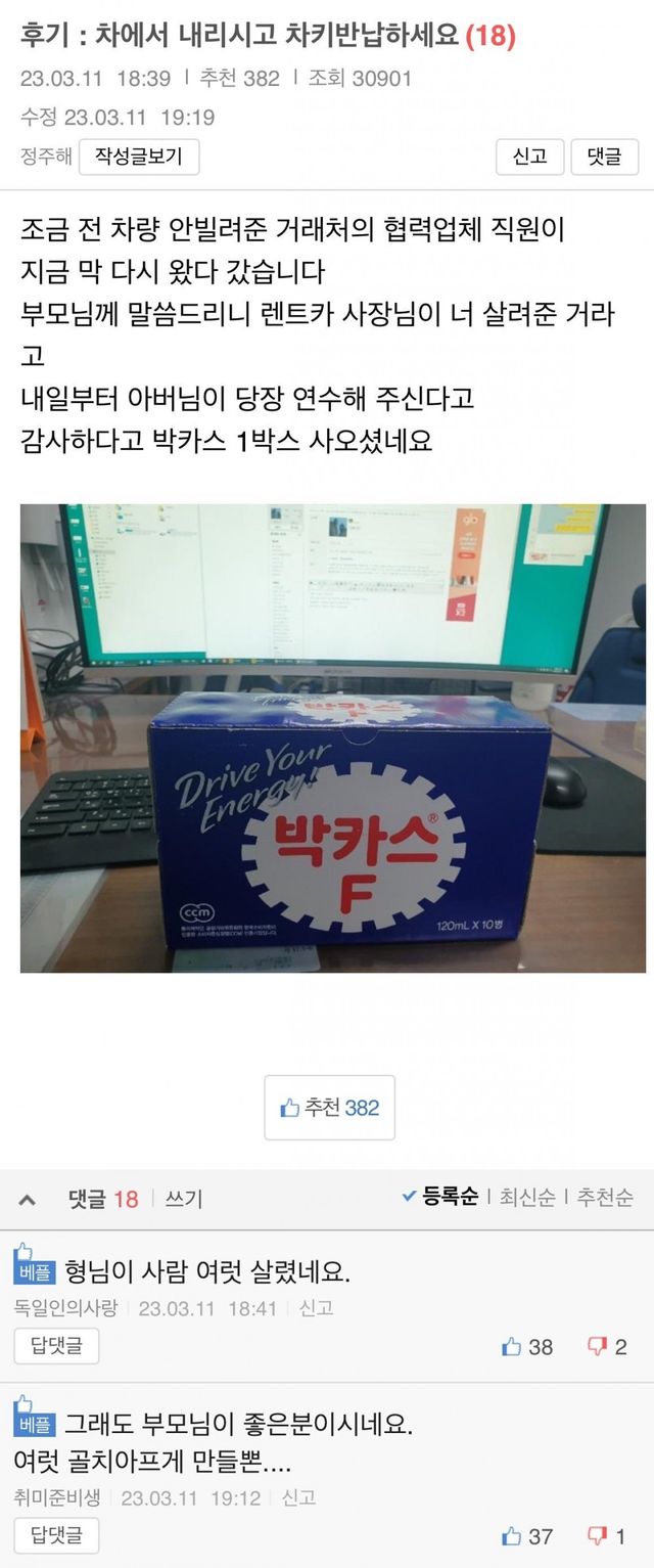 협럭업체 직원 부모님이 죄송하다고 박카스 줌