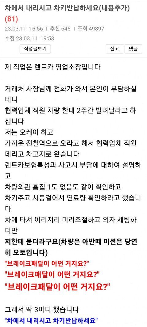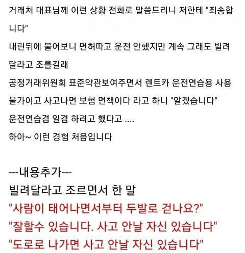 거래처 사장이 협력업체 직원 차 렌트하러 보냄