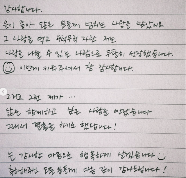 1일 하니는 자신의 SNS에 직접 쓴 손 편지를 올려 결혼 소식을 전했다. 하니는 “운이 좋아 많은 분께 넘치는 사랑을 받았어요. 그 사랑을 먹고 무럭무럭 자란 저는 사랑을 나눌 수 있는 사람으로 무탈히 성장했습니다”라고 말문을 열었다.