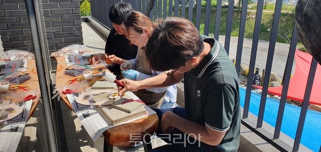 오후에는 독특한 발명품이 가득한 이색적인 ‘궤짝 카페’(감곡면 소재)에서 강아지들과 함께 휴식을 취하면서 맛있는 점심을 먹고, ‘에버독’(생극면 소재) 애견 전용 카페에서 고급스러운 통가죽으로 반려견 목걸이 만들기 체험을 진행했다.