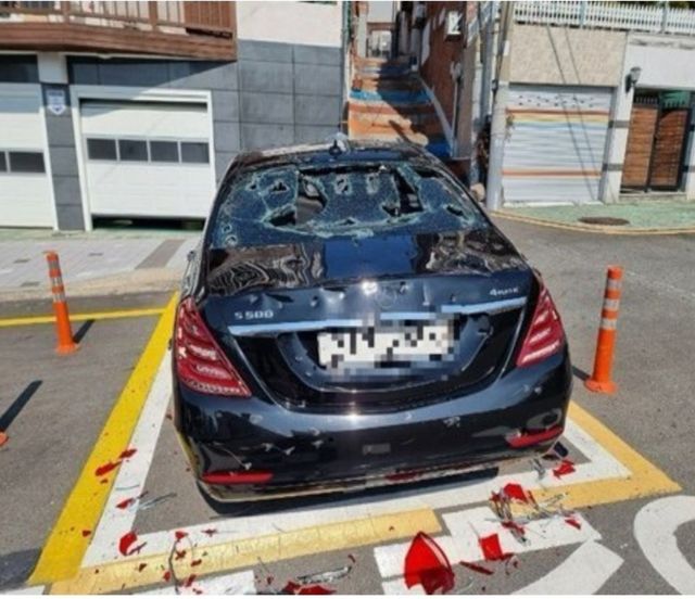 그는 지난달 23일 부산 사상구 한 주거지 전용 주차장에 주차된 1억 6000만원 상당 벤츠 승용차를 망치로 여러 차례 내리쳐 파손했다.