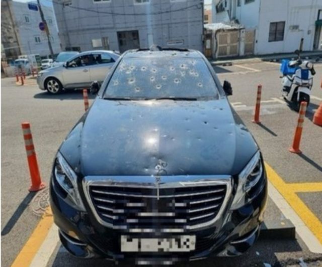 벌집처럼 구멍이 난 이 차량의 수리비는 8600만원에 달한 것으로 전해졌다.