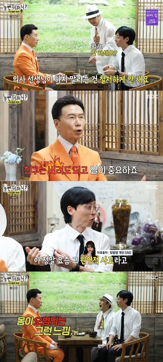 또한 그는 "의사선생님들이 하지 말라는 건 절대 안한다. 탄거 단거 기름진 거 안 먹는다"며 "일정 있을 때는 3끼를 먹고 없을때는 2끼를 먹는다. 저녁 7시전에 식사를 끝내고 야식을 먹지 않는다"고 했다.