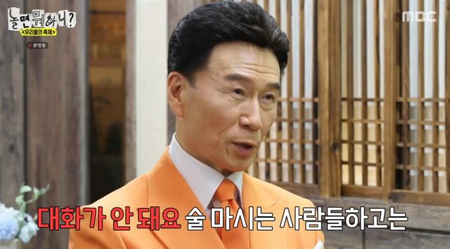 유재석 역시 동감하며 "저도 그렇다"고 물개박수를 쳤다. 강진은 "술 마시는 사람과는 대화가 안된다. 오염되는 느낌이다. 맨정신인 사람하고만 대화한다"고 했다.