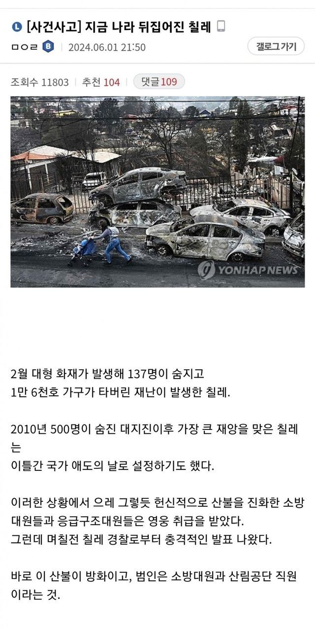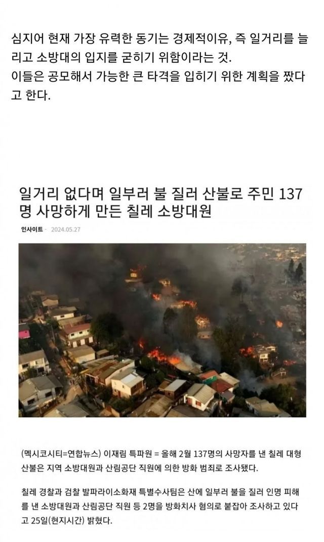 소방관 일거리 만드려고 치명적인 부분을 방화해서