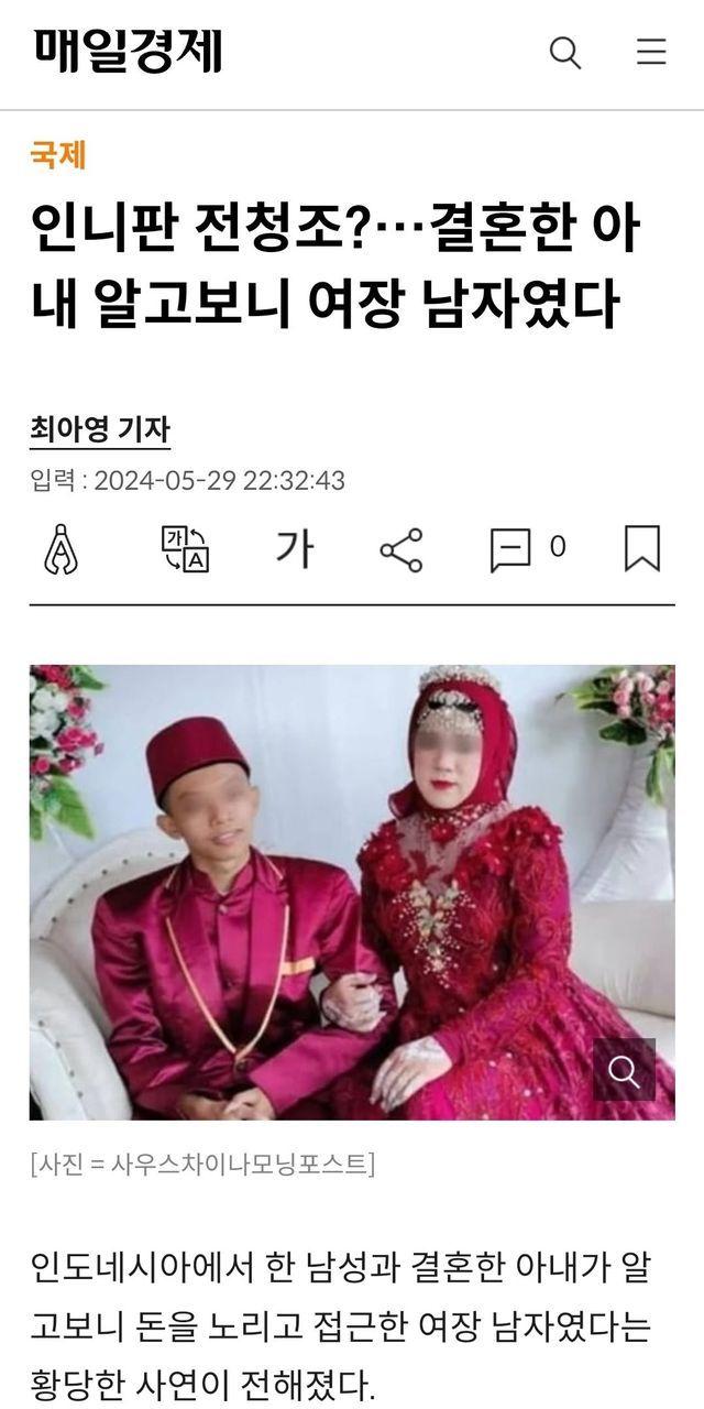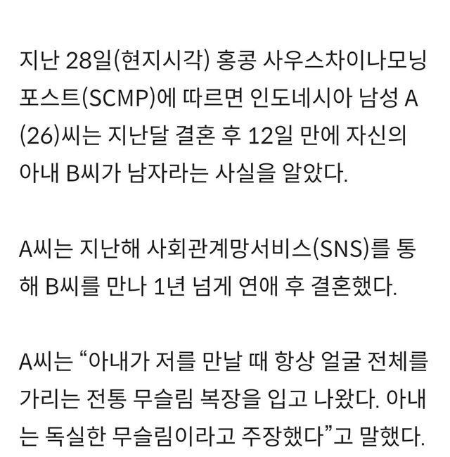 결혼 이후 B씨는 집에서도 히잡을 고집했으며, 생리 등을 이유로 성관계를 거부했다. 의심을 품은 A씨는 B씨에 대한 조사에 나선 결과 그가 2020년부터 여장을 해온 남성임을 알아내 경찰에 신고했다.