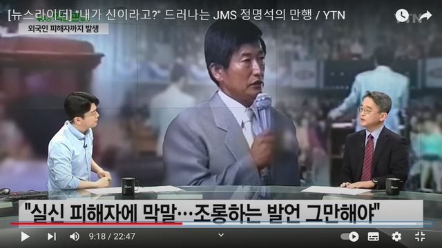 이런 행태가 지금 다시 시작되고 있고 그래서 지금 정명석 변호인들에게 제가 말씀드리고 싶은데 제발 피해자들 윽박지르고 조롱하고 모욕하는지 이제 그만하십시오.