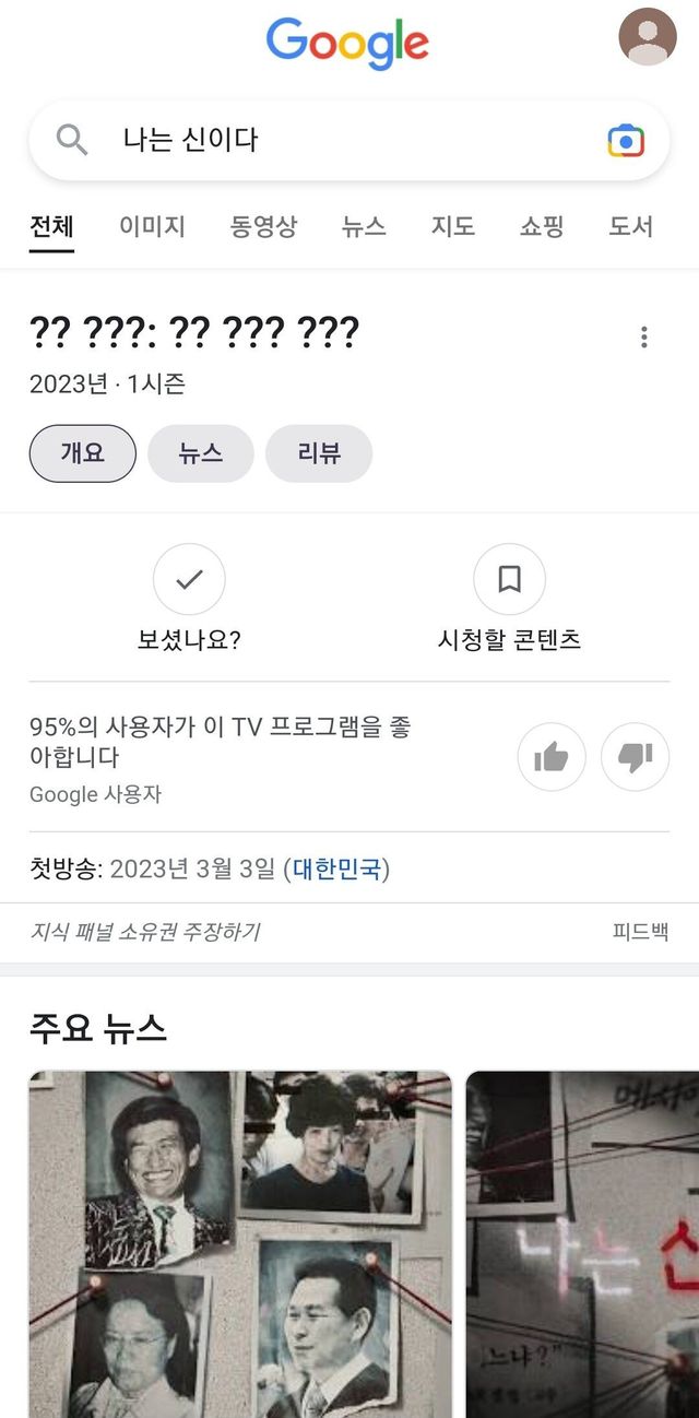 구글에 나는 신이다 검색하면 프로그램 정보창이 ????로 이상하게 뜨고 시청가능한 OTT도 안뜬다는 제보가 많음