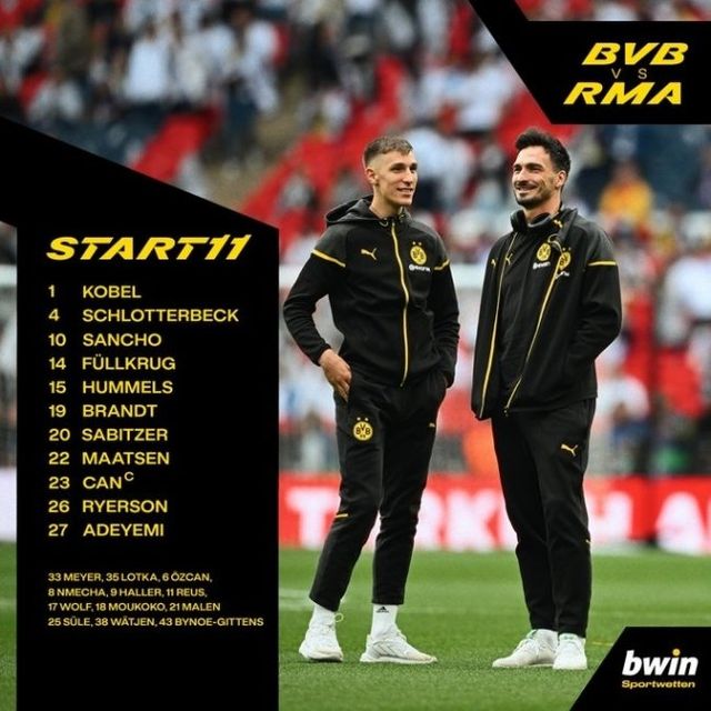 또 도르트문트는 코벨, 슐로터베크, 산초, 퓔크루크, 후멜스, 브란트, 자비처, 마트센, 엠레 잔, 리에르손, 아데예미가 선발 출격한다.