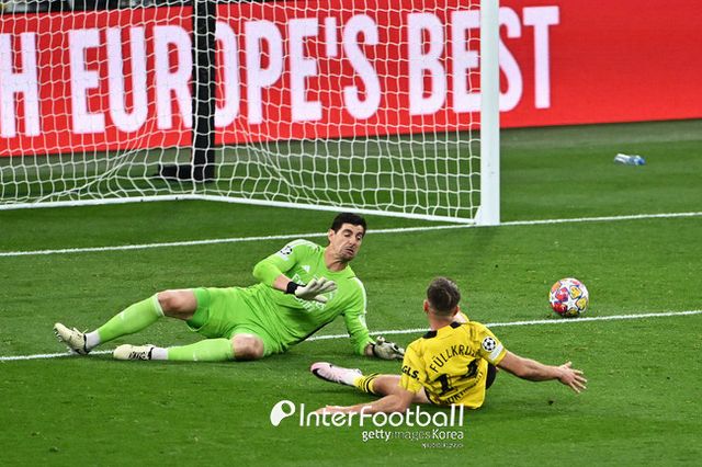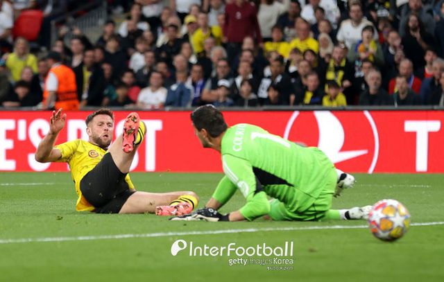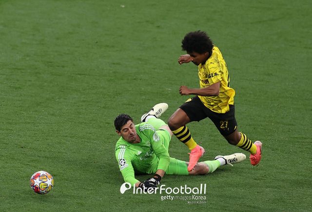 도르트문트가 땅을 쳤다. 전반 23분 계속된 압박으로 공을 탈취하던 도르트문트는 산초의 좋은 패스를 푈크루크가 슈팅으로 보냈는데 골대에 맞았다. 세컨드볼을 잡은 뒤 중앙으로 보냈는데 마무리가 되지 않았다. 찬이 부상 신호를 보냈지만 계속 경기를 소화했다. 전반 27분 산초의 패스를 받은 아데예미가 미친 속도를 보여줬고 슈팅까지 했는데 쿠르투아가 막았다. 푈크루크 재차 슈팅도 쿠르투아가 잡아냈다.
