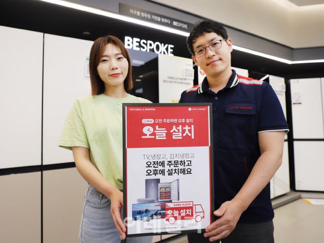 대상 품목은 냉장고, 김치냉장고, TV 3개 품목(110cm(43형) 이하 TV 등 일부 상품 제외)이며, 서울, 수도권 지역에서 우선 시행한다. 해당 지역 내 오프라인 매장과 온라인쇼핑몰의 ‘오늘설치 전문관’을 통해 신청할 수 있으며, 서비스 이용료는 7만원이다.