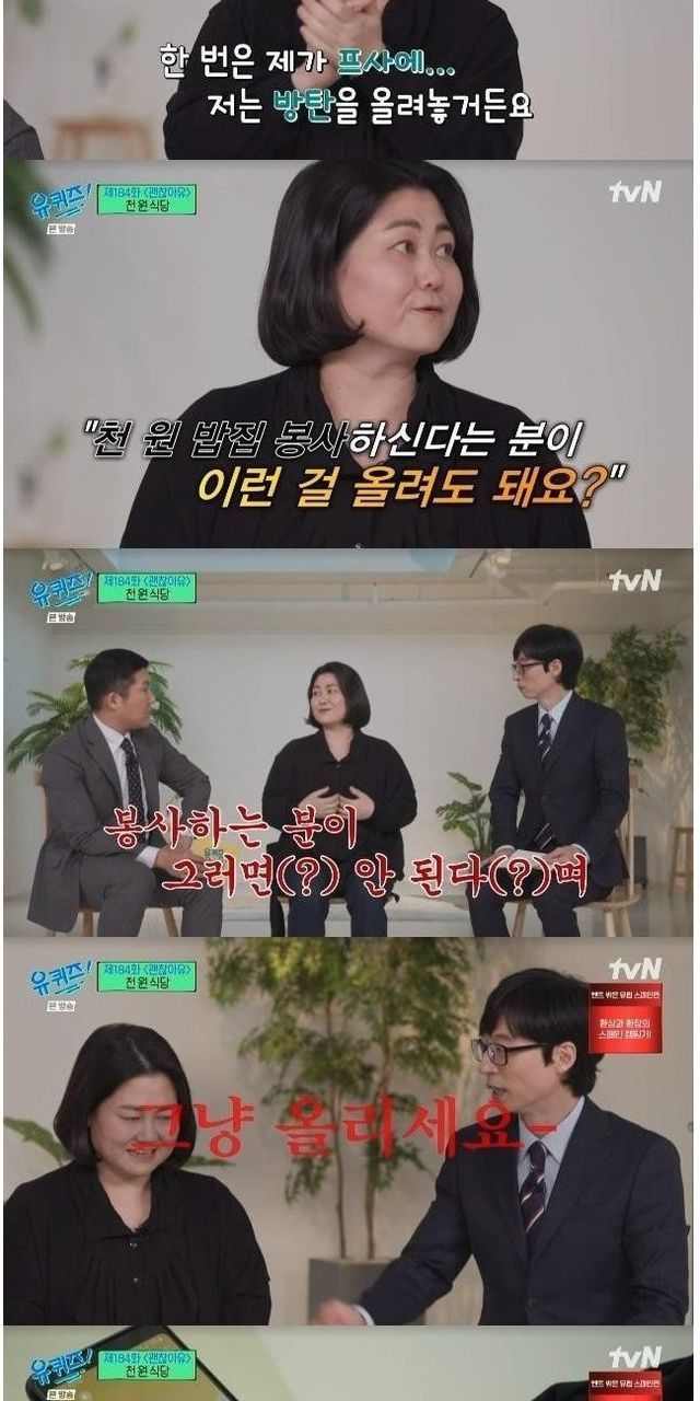 천원짜리 밥집 봉사하신다는분이 이래도 되냐(??)라는 말을 들어서 내렸다고 함
