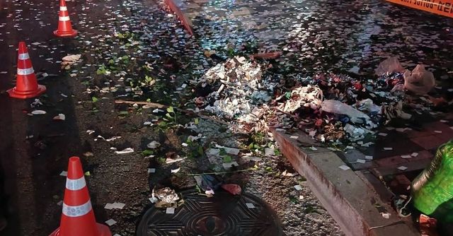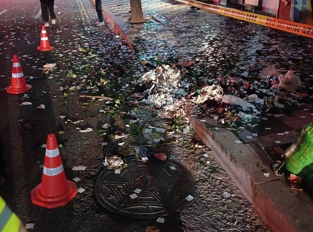 지난 1일 오후 인천시 계양구 길가에 북한이 보낸 오물 풍선 잔해가 떨어져 있다 / 뉴스1(인천소방본부 제공)