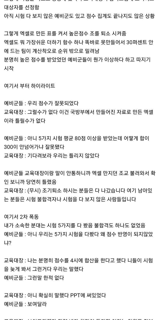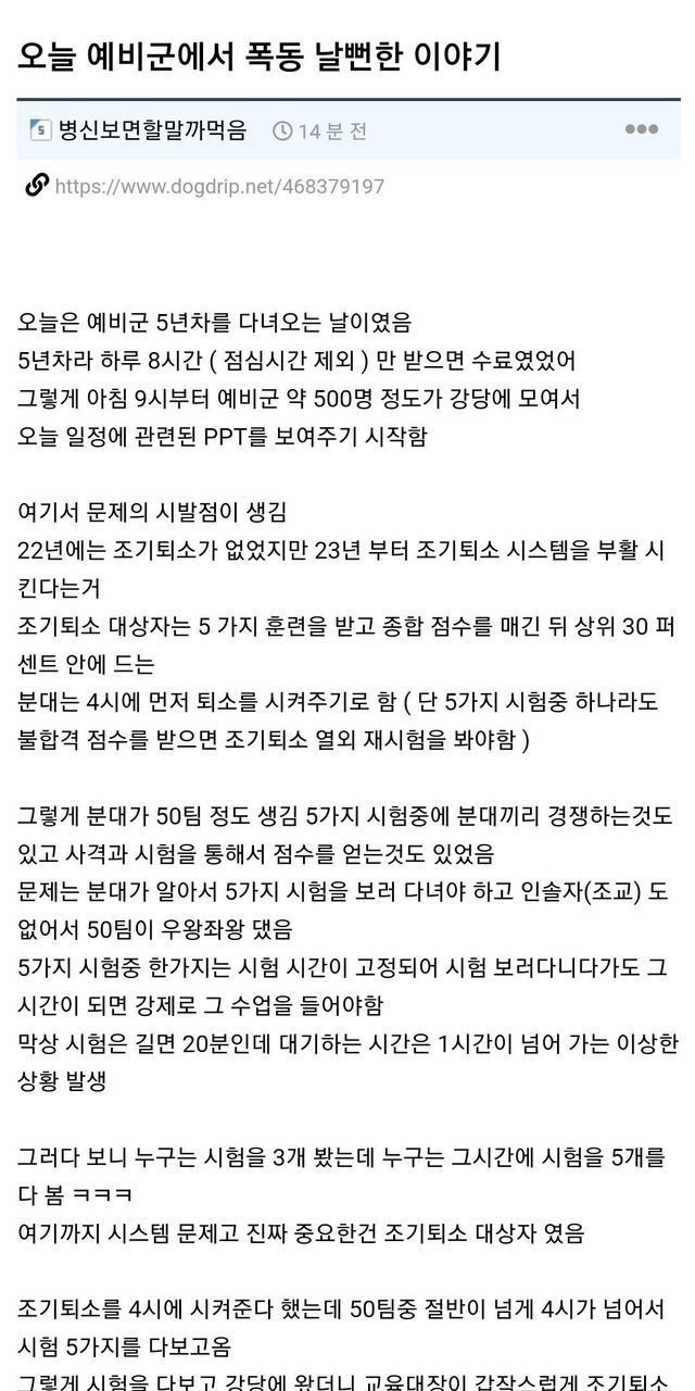 오늘 예비군에서 폭동 날뻔한 이야기 …