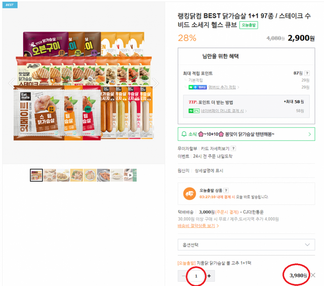 랭킹닭컴에서 1+1 행사를 하고 있어서 이 제품을 픽했다