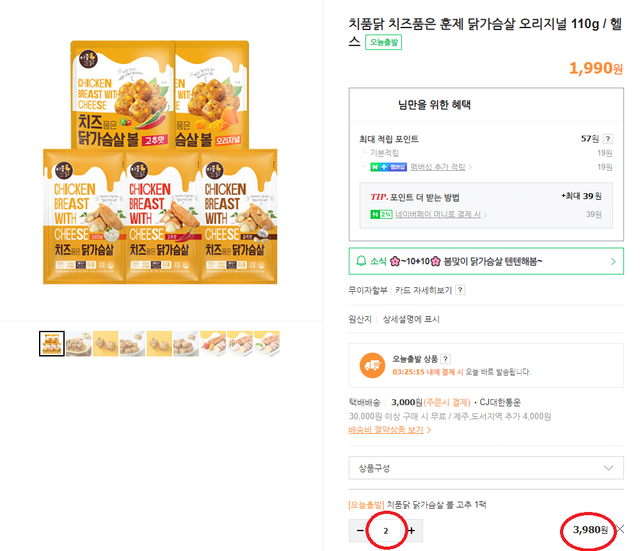 치품닭 1+1 = 2개 3980원 하지만 한번 통수 맞은 사람으로서 진짜 할인이 맞는지 확인 해보기로 했다