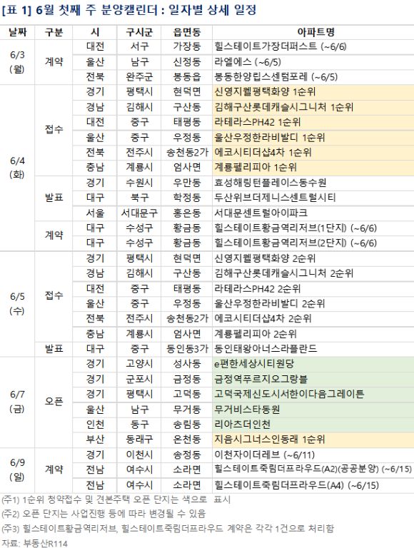[아이뉴스24 이수현 기자] 6월 첫째 주에는 전국 7개 단지 총 3721가구(일반분양 3386가구)가 분양에 나선다.