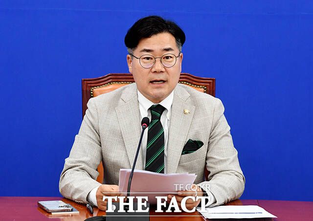 [더팩트ㅣ국회=배정한 기자] 박찬대 더불어민주당 원내대표가 2일 오전 서울 여의도 국회에서 기자간담회를 열고 발언을 하고 있다.