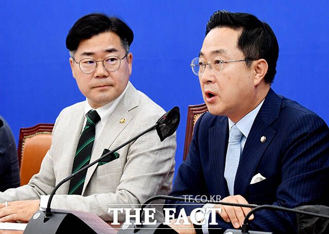 발언하는 박찬대 원내대표(왼쪽).