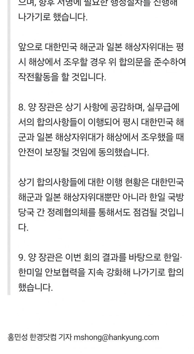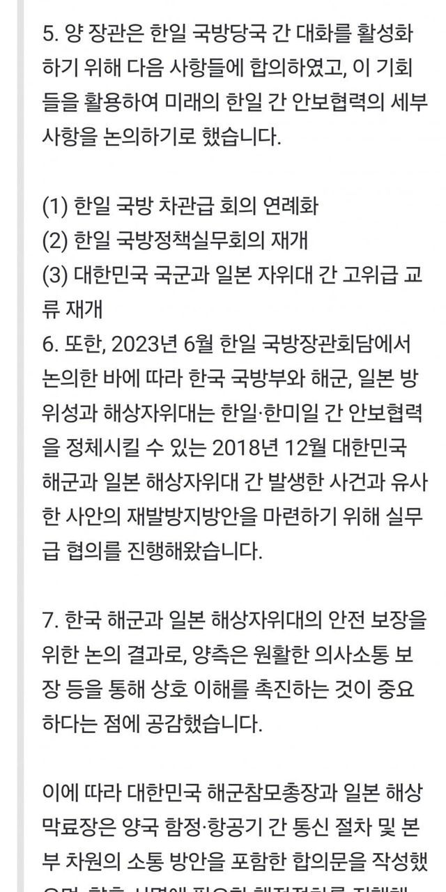 합의는 양측이 특정 문제에 대해 서로의 입장을 조율하고, 함께 해결책을 찾기로 결정하는 과정입니다. 韓日 초계기 갈등에 대한 재발방지 및 국방대화 활성화 합의는 양국이 평화롭고 안정적인 관계를 유지하는 데 중요한 역할을 합니다.