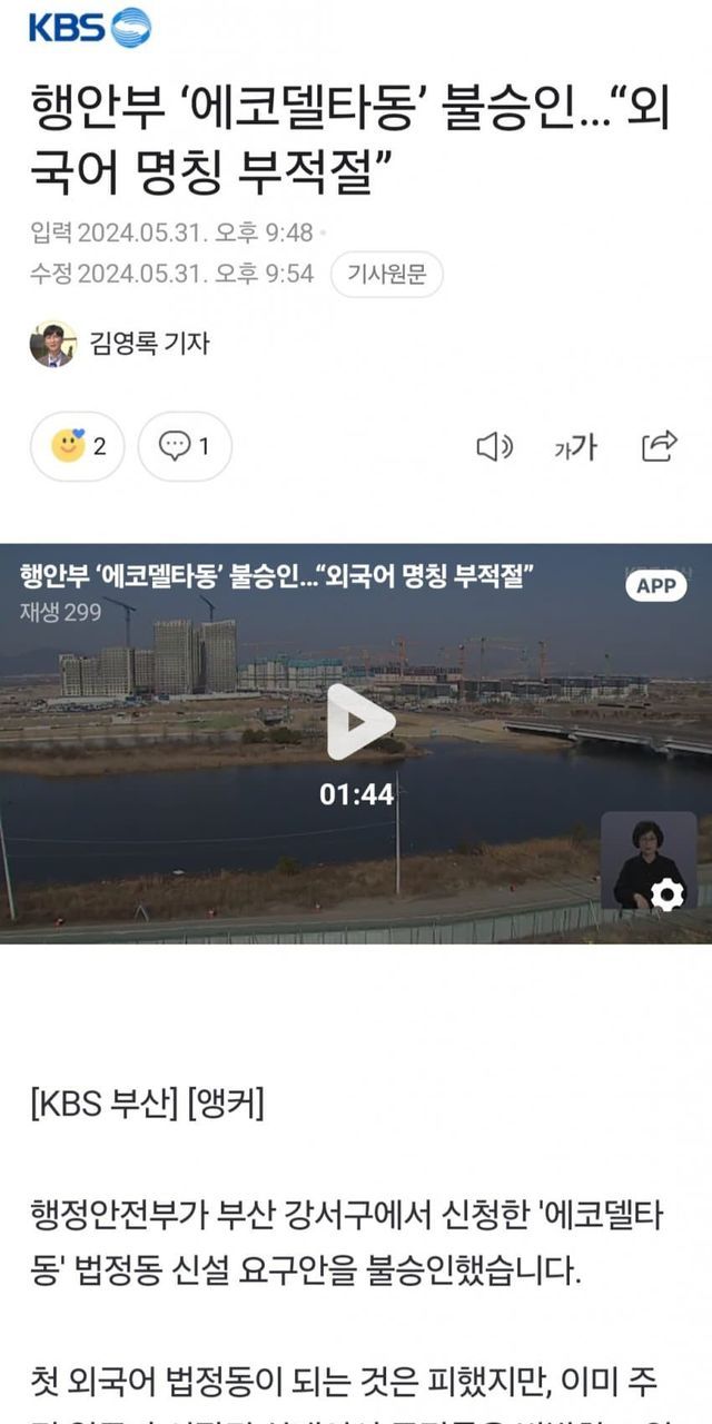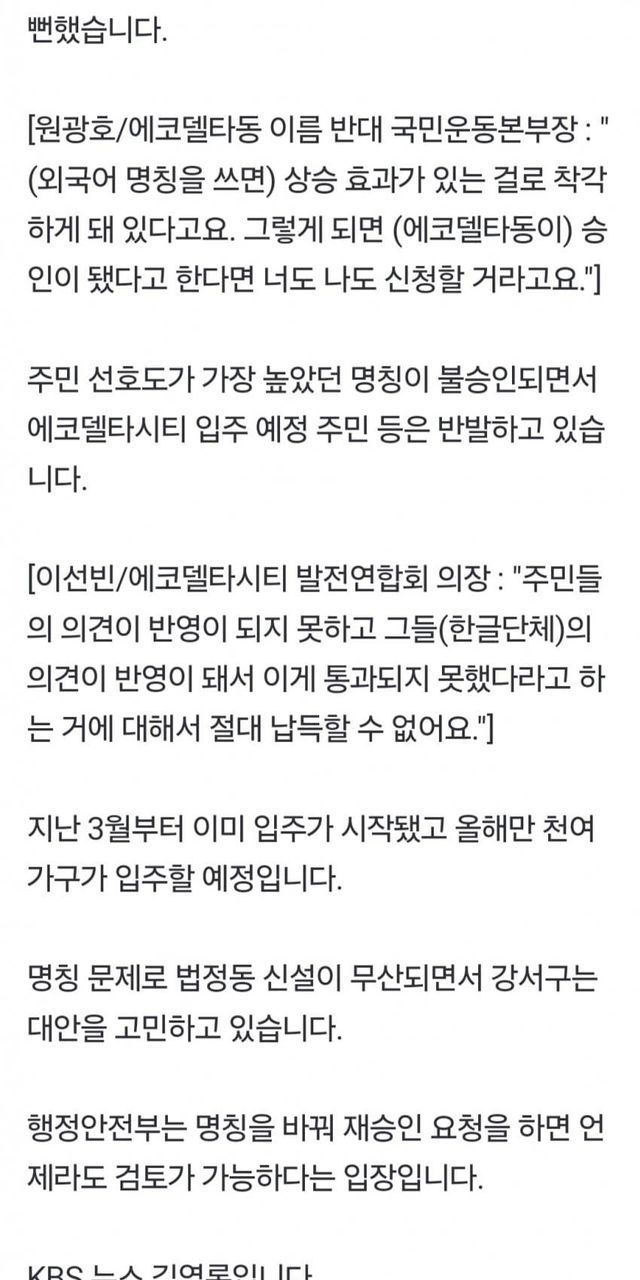 에코델타동은 특정 지역이나 프로젝트의 이름으로 보입니다. 에코델타시티와 관련된 구역일 가능성이 있습니다. 해당 명칭이 외국어로 되어 있어 부적절하다고 판단된 내용이 뉴스의 핵심입니다.