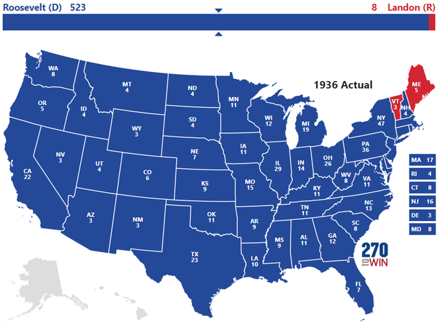 공화당 역사상 최악의 대참패. 선거인단 수 차이만 515명