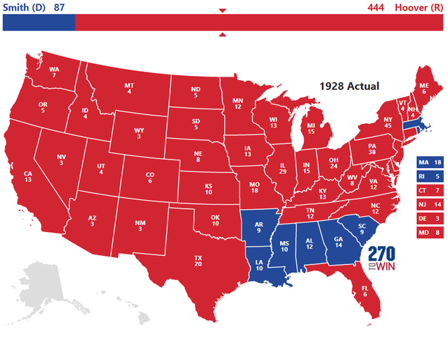 게다가 민주당의 앨 스미스가 가톨릭이었기에 민주당은 욕도 오질나게 쳐먹음. 지금은 가톨릭은 바이든이 대통령도 하지만 당시만해도 가톨릭후보를 낸다는건 사실상 선거를 포기하는걸로 생각됐음.