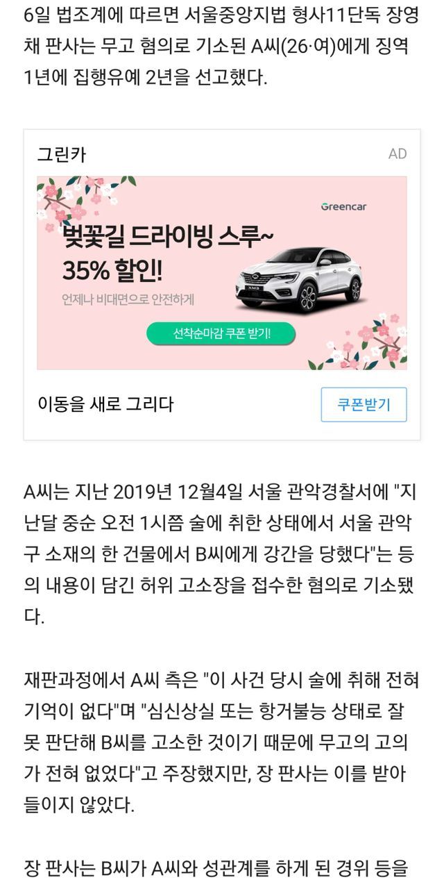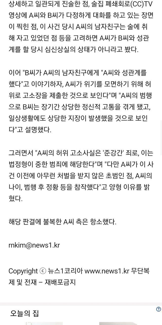 4. 1심에서 집행유예 2년 받았지만 여자는 부당하다고 항소함