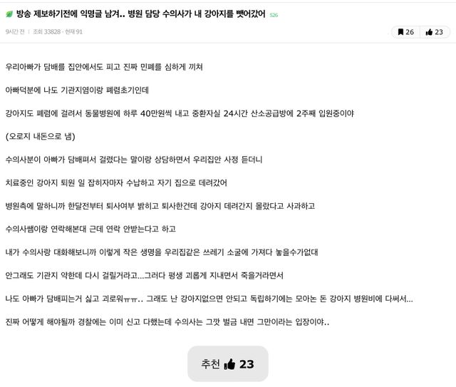 댓글에서는 그따구로 키울거면 걍 수의사가 키우게 해라vs 엄연히 절도인데 이걸 왜 옹호하냐로 싸우는중