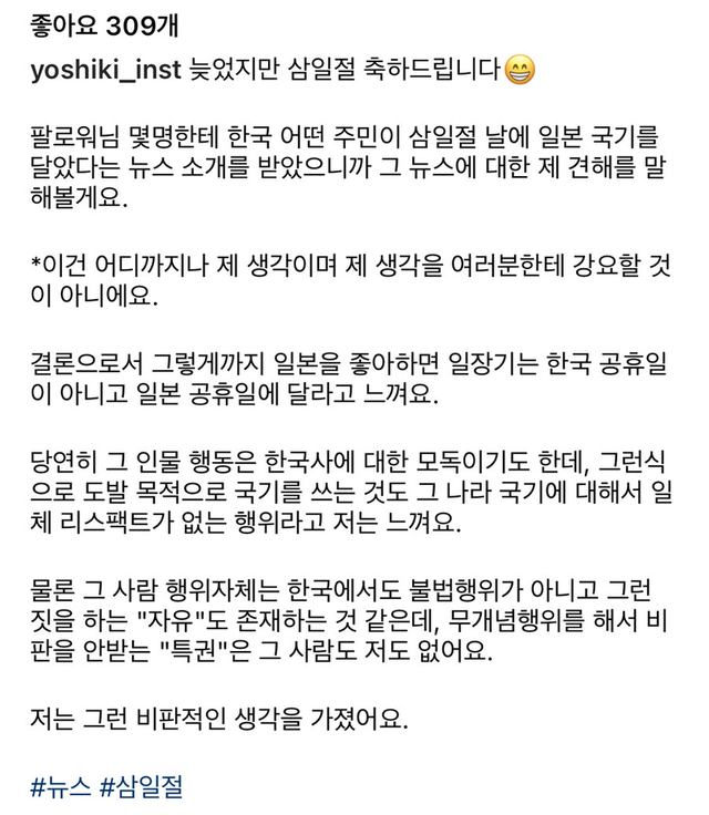 일본 공휴일도 아니고 삼일절에 일장기 다는건 그냥 어그로일뿐