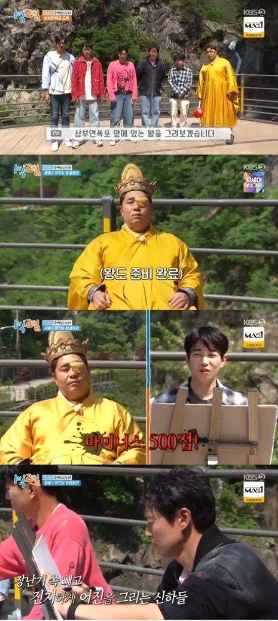 멤버들은 삼부연폭포에 도착해 화가 겸재 정선이 되어 3분 동안 왕을 그려보는 시간을 가졌다.