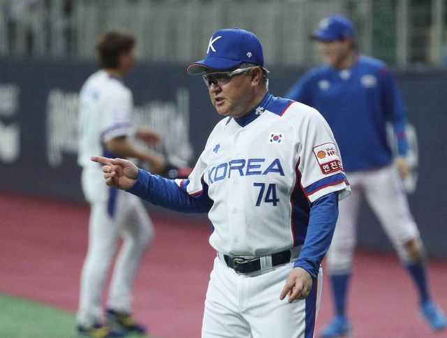 한화 새 감독으로 부임한 김경문 감독. 지난 2019년 11월 1일 서울 구로구 고척스카이돔에서 열린 2019 세계야구소프트볼연맹(WBSC) 프리미어12 대한민국과 푸에르토리코의 평가전 에서 김경문 감독이 작전지시를 하고 있다. / 뉴스1
