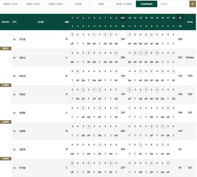 -결승전 : 김민규(20홀 승) vs 조우영(패)
