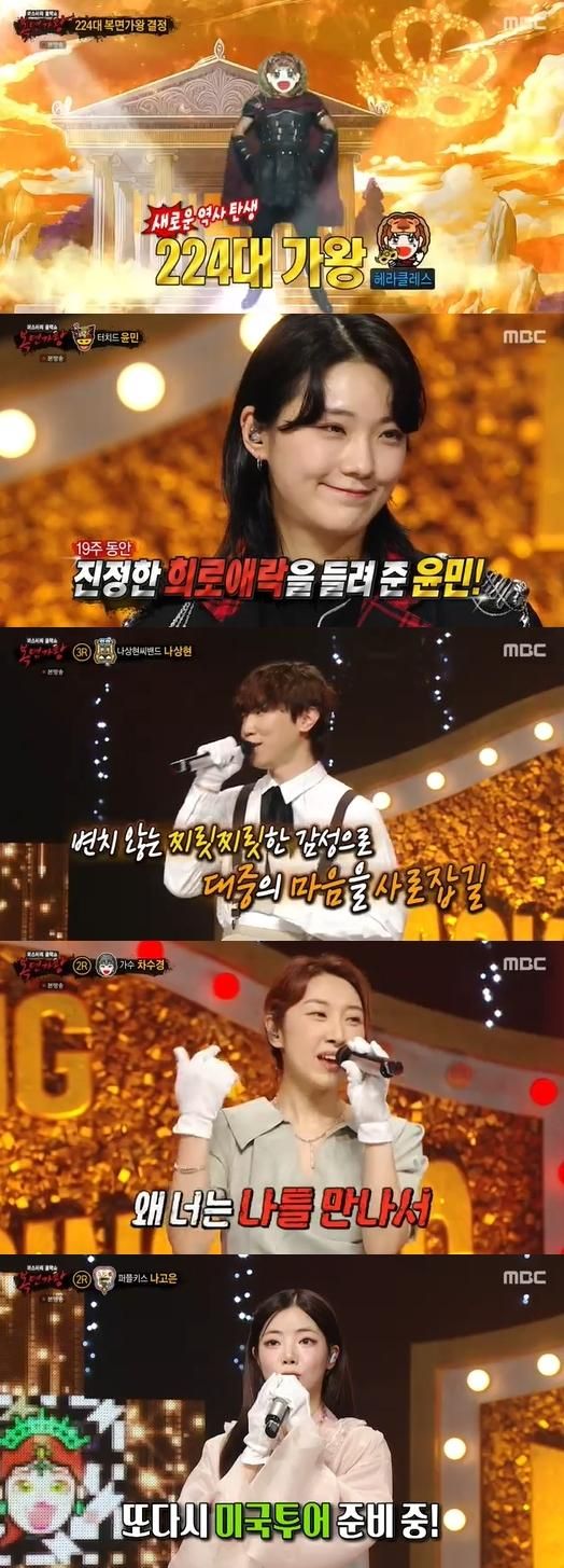 [메디먼트뉴스 김민정 기자] 6월 2일 방송된 MBC 예능 프로그램 '복면가왕'에서는 '헤라클레스'가 희로애락도 락이다의 10연승을 저지하고 새 가왕의 자리에 올랐다.