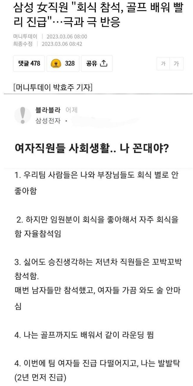 삼성 여직원 “회식 참석, 골프 배워 빨리 진급” …