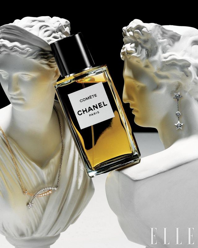 “여성들을 화려한 별로 장식하고 싶어요.” 1932년 가브리엘 샤넬의 바람을 담아 세상에 공개된 ‘비쥬 드 디아망(Bijoux de Diamants)’. 그중 밤하늘을 밝히는 혜성의 영롱한 아우라를 담은 꼬메뜨 네크리스에서 영감받아 레 젝스클루시프 드 샤넬의 열여덟 번째 향수 ‘꼬메뜨’가 탄생했다. 이 향을 완성하기 위해 조향사 올리비에 뽈쥬는 헬리오트로프와 아이리스 노트를 조합해 마치 꼬메뜨 네크리스가 목을 부드럽게 감싸듯 포근하고 파우더리한 향기를 만들었다. 레 젝스클루시프 드 샤넬 꼬메뜨 오 드 빠르펭, 200ml 63만원,