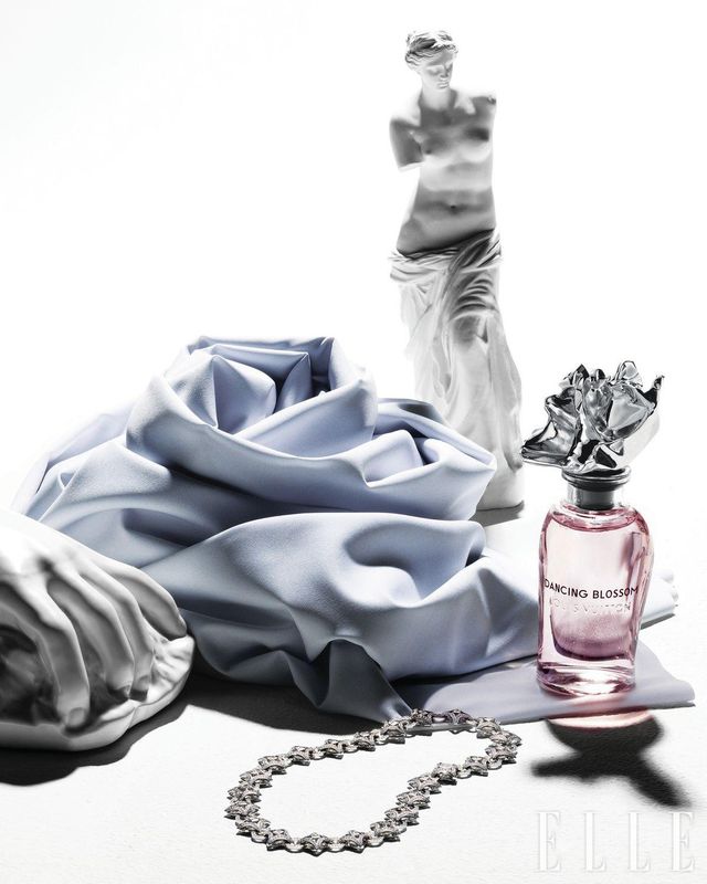 모노그램의 아이코닉한 꽃잎 셰이프는 하이 주얼리 컬렉션은 물론 파인 주얼리, 워치에 이르기까지 루이 비통 메종에서 빼놓을 수 없는 상징적 디자인이다. 건축가 프랭크 게리가 디자인한 레 젝스트레 콜렉시옹의 ‘댄싱 블라썸 퍼퓸’을 통해서도 꽃과 관련한 브랜드의 무한한 아이디어를 확인할 수 있는데, 바람에 흩날리는 꽃송이를 그대로 담은 듯한 금속 뚜껑이 바로 그것. 재스민과 튜베로즈, 오스만투스 등 생동감 있는 플라워 노트로 완성한 감미로운 꽃내음을 맡고 있으면 만개한 꽃잎이 눈앞에서 피어오르는 듯하다. 레 젝스트레 콜렉시옹, 댄싱 블라썸 퍼퓸, 100ml 가격 미정,
