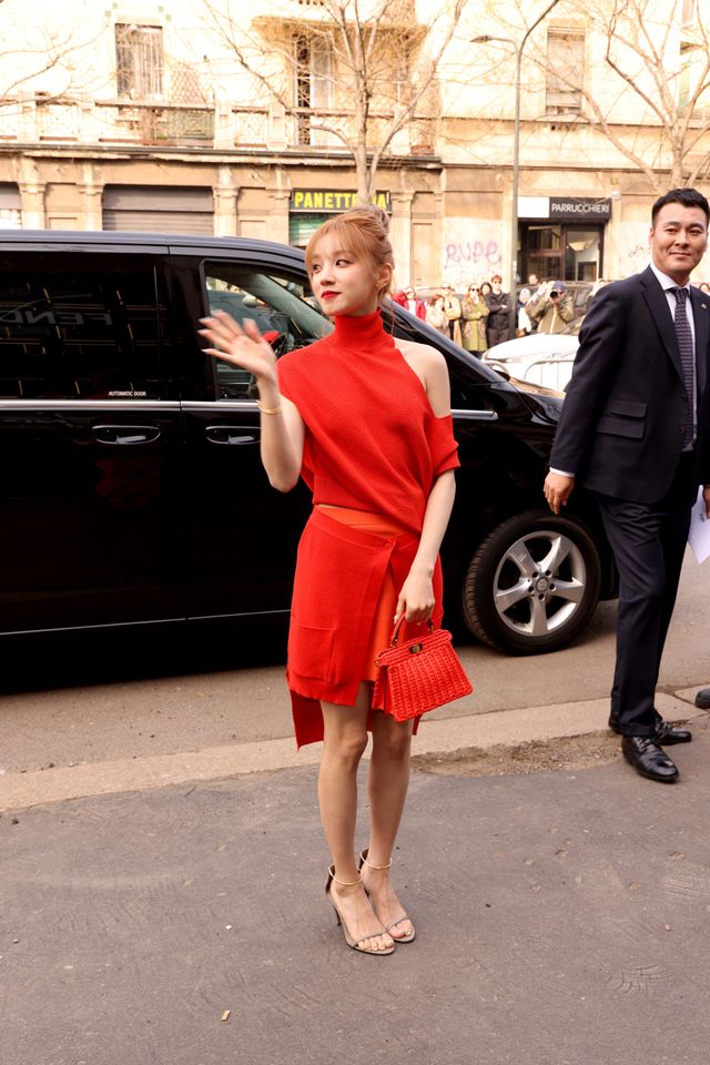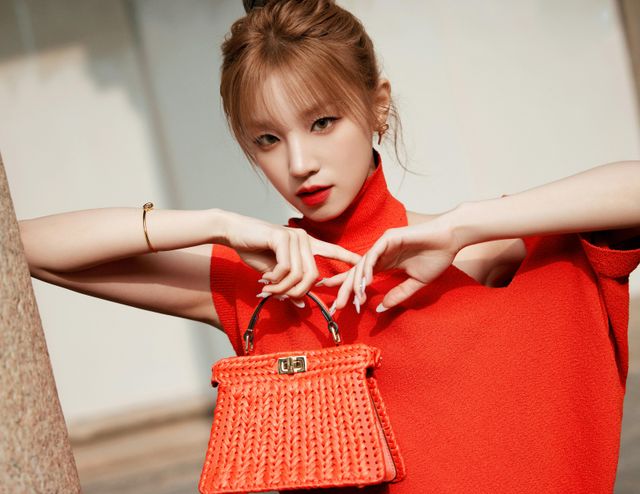 강렬한 레드 니트와 서정적인 눈빛, 아이들 미연의 포근한 데일리 모먼트