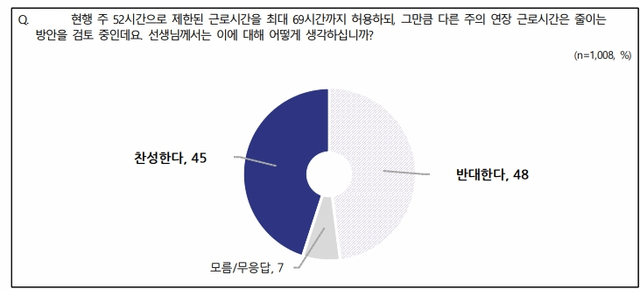 69시간 개편에 영향 받는 근로자는 전부 반대가 높고
