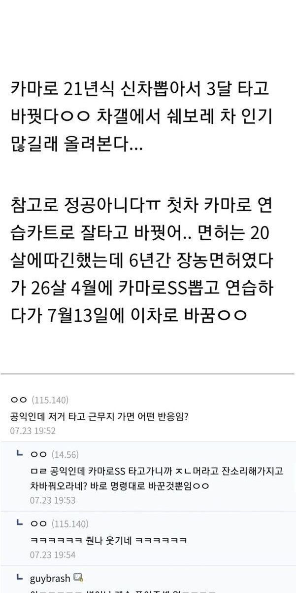 근무지에서 차 바꾸라고 눈치받았던 공익 …