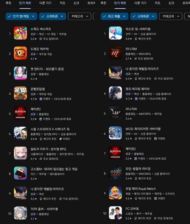 주간 순위는 모바일 게임 구글 플레이 기준 순위를 통해 1주간 어떤 게임들이 유저들의 주목을 받았는지 살펴보는 코너다.