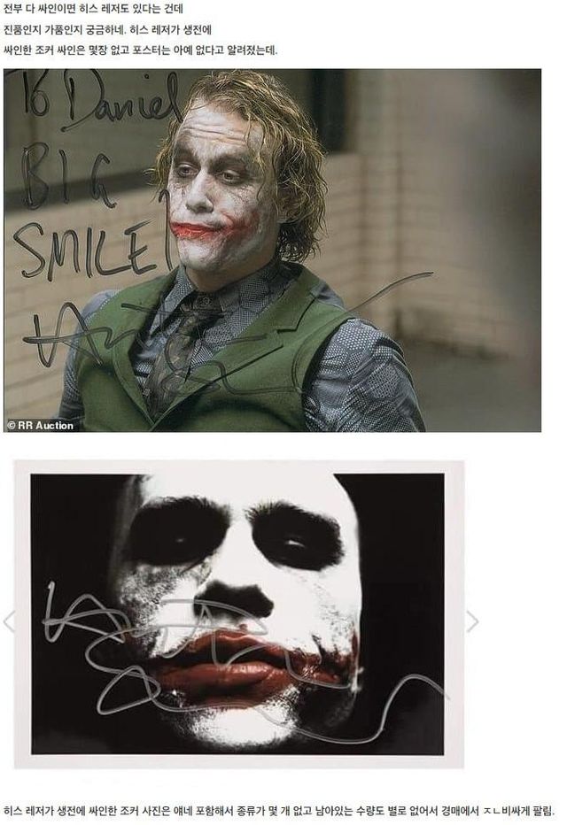 아래가 진짜 히스 레저 싸인이라는데 둘이 너무 다르지 않나?