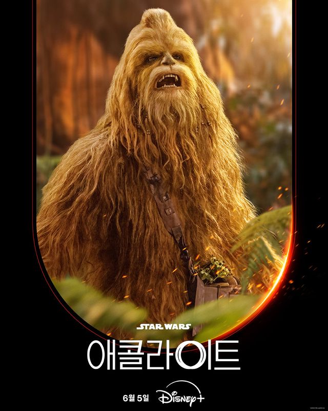 우키족의 제다이 ‘켈나카’(요나스 수오타모)는 코파르의 정글에서 고독한 삶을 살아가는 인물이다. 공개된 포스터 속에서 어딘가를 향해 울부짖는 모습이 과연 그의 앞에 어떤 일이 벌어졌는지 호기심을 자극한다.