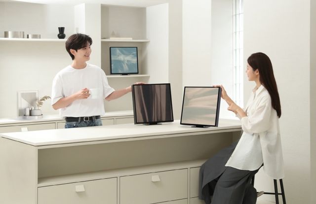 삼성전자 모델이 패션 브랜드 '지용킴'과 협업한 '뮤직 프레임 X 지용킴' 스페셜 에디션을 소개하고 있다. 사진=삼성전자 제공