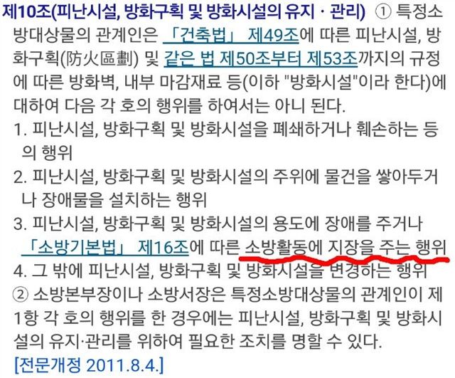 소방시설법상 소방활동에 지장을 주는 행위로 판단했고
