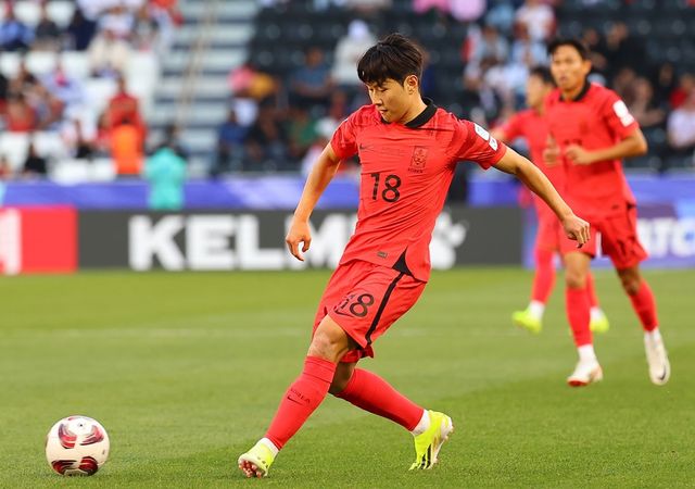 2024년 1월 15일(현지 시각) 카타르 도하 자심 빈 하마드 스타디움에서 열린 2023 아시아축구연맹(AFC) 아시안컵 조별리그 E조 한국과 바레인의 경기에서 대표팀 이강인이 바레인 문전으로 패스를 찔러 넣고 있다. / 연합뉴스