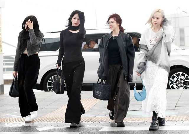 에스파 지젤(왼쪽부터)과 카리나, 닝닝, 윈터가 29일 해외 일정을 위해 인천국제공항에 도착해 홍콩으로 출국하고 있다. 2024.3.29/뉴스1